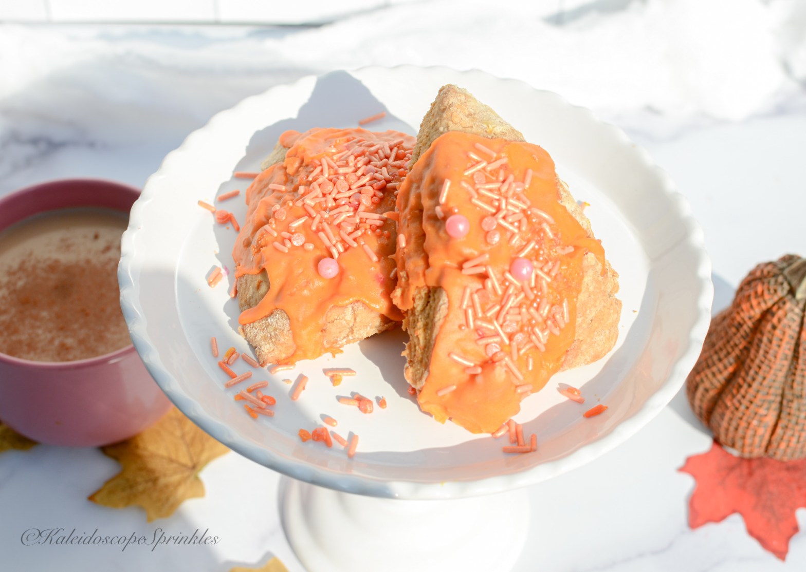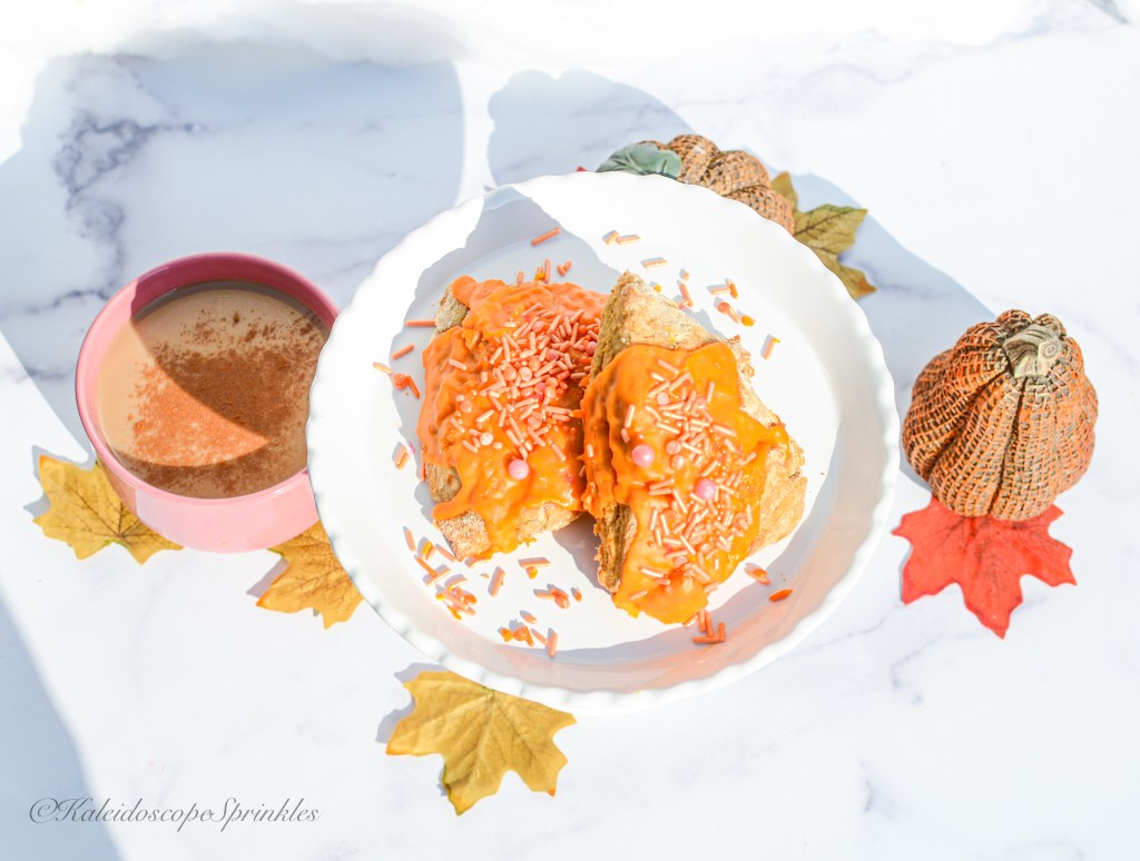 Once the scones have cooled to room temperature. Dip the scones into the glaze to cover them completely. Sprinkle your Sweet Potato Pie Sprinkle Mix on top.