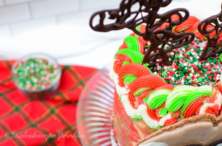 The recipe for my Rudolph inspired chocolate mint cake and step by step decorating video is below.