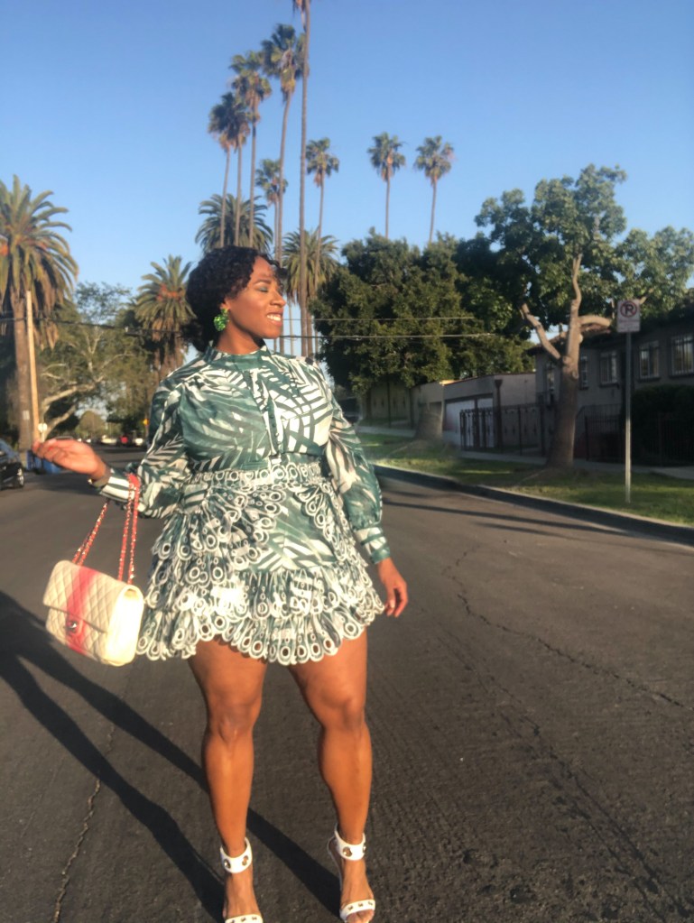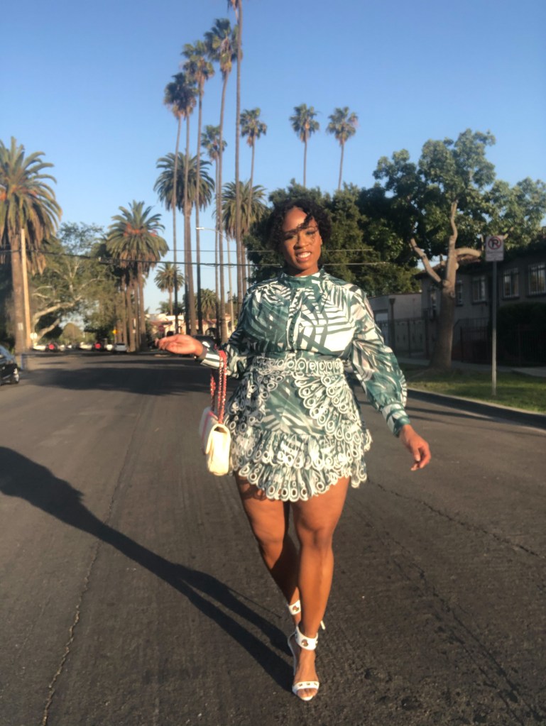 I absolutely love Spring and the fashion that comes along with it. The temperatures are the perfect blend of crisp cool mornings and warm evenings. Here in California that usually means the classic sweatshirt and slides. I myself prefer to be a little more jazzy when casual or dressed up for this time of year. This especially applies to Palm Sunday and Easter Sunday. This year I decided to go all the way off for Palm Sunday. I’m serving green, legs and ham for breakfast. Check out the details of my outfit below.