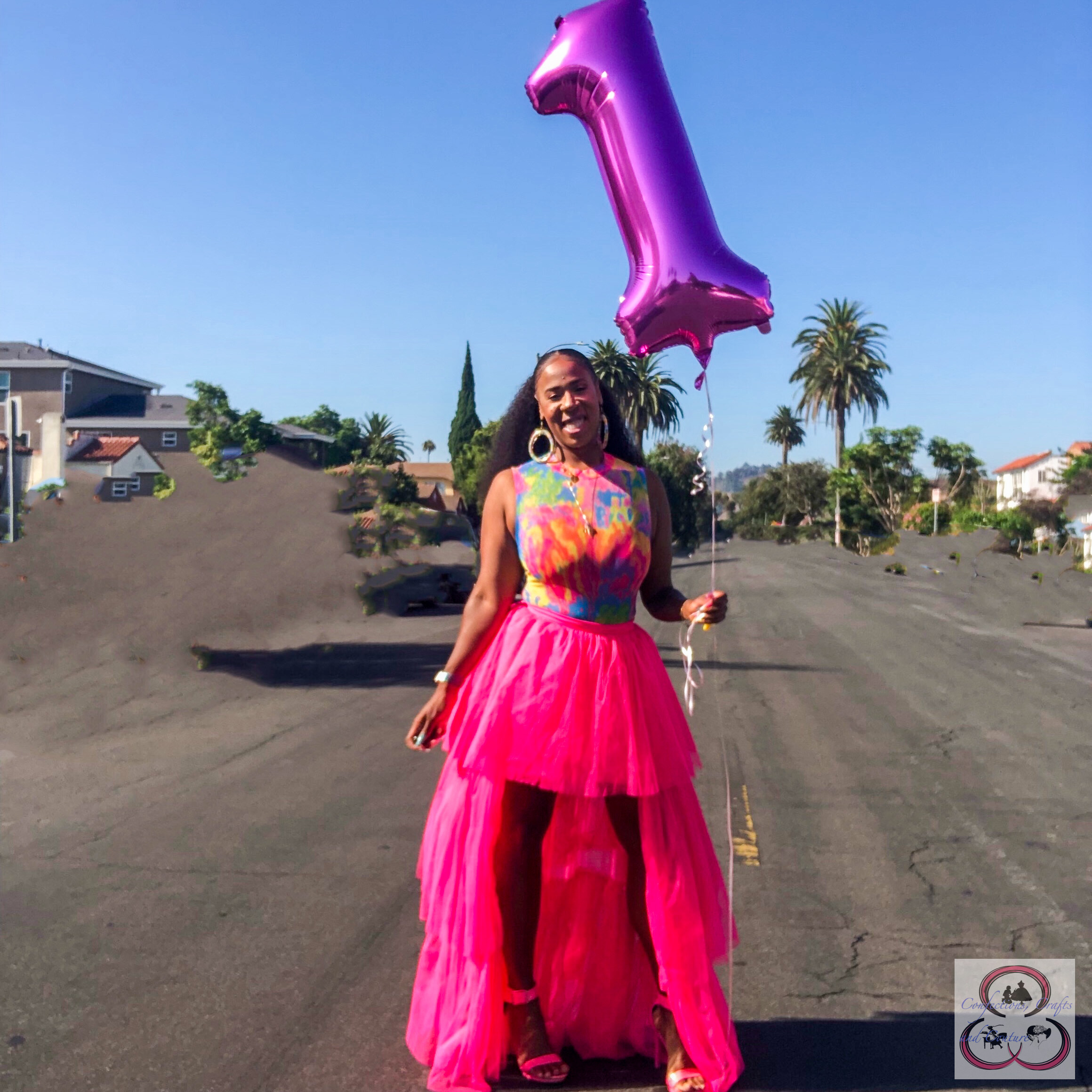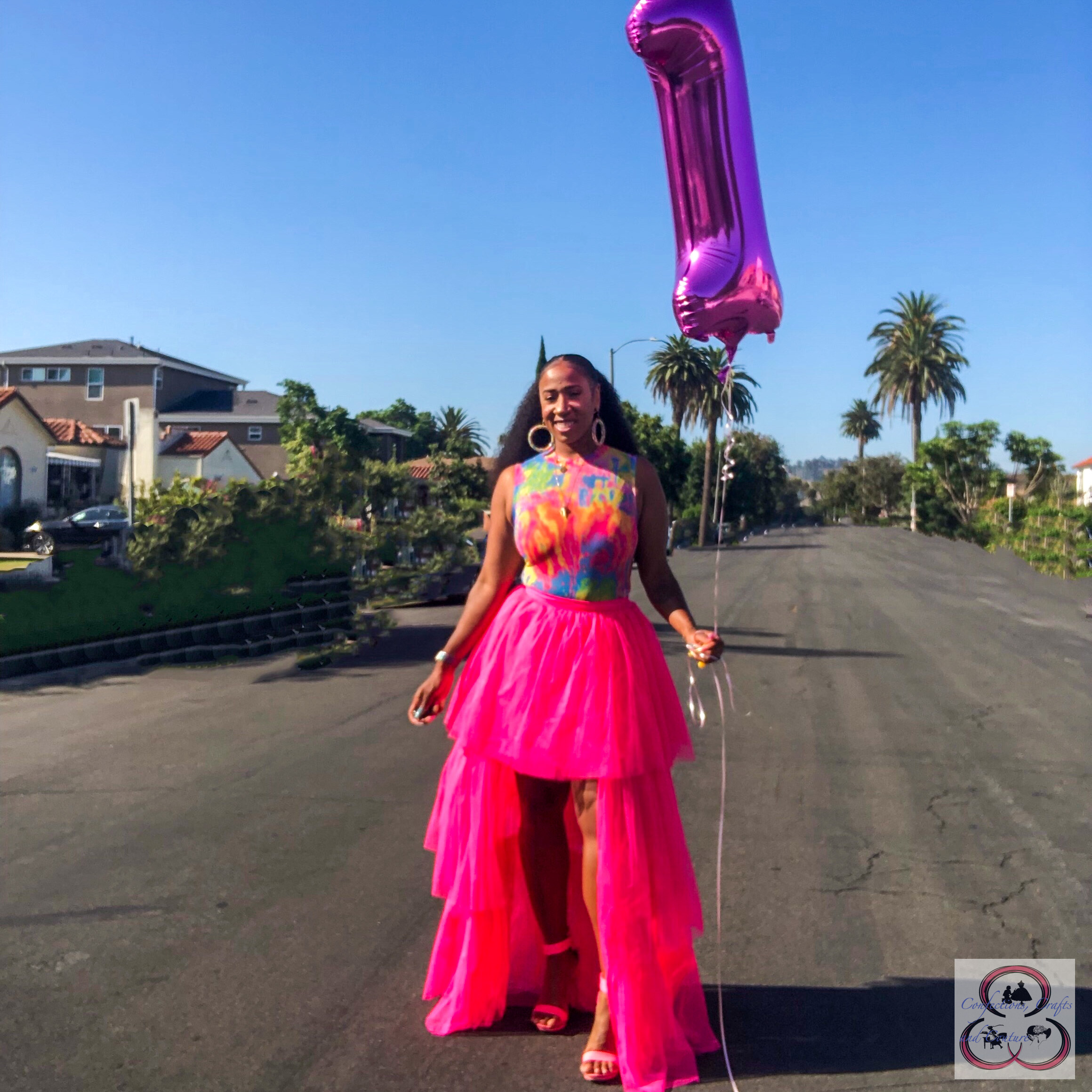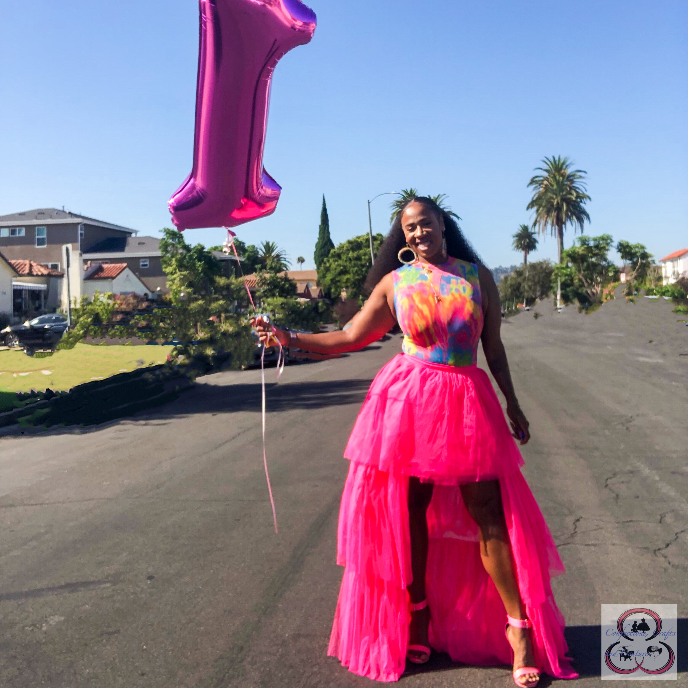 This past weekend I had the wonderful opportunity to celebrate my anniversary. No it’s not the anniversary you are thinking about. I celebrated one year of my fabulous small business, Kaleidoscope Sprinkles. I started my business last year not only to celebrate my passion of baking and decorating but also to celebrate the Black community. Being a small business owner is not a cake walk (pun intended), but I wouldn’t change my decision at all. I decided to celebrate my business anniversary by making a delicious red velvet number cake decorated in my favorite colors and sprinkles. I also decided to get jazzy in some bright colors, a balloon and have my own photo shoot. Check out my pictures and details of my anniversary weekend below.