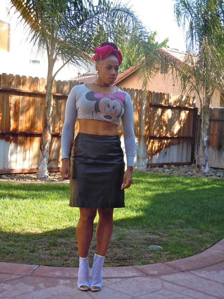 Black leather pencil skirt: thrifted at Goodwill (purchase similar here)