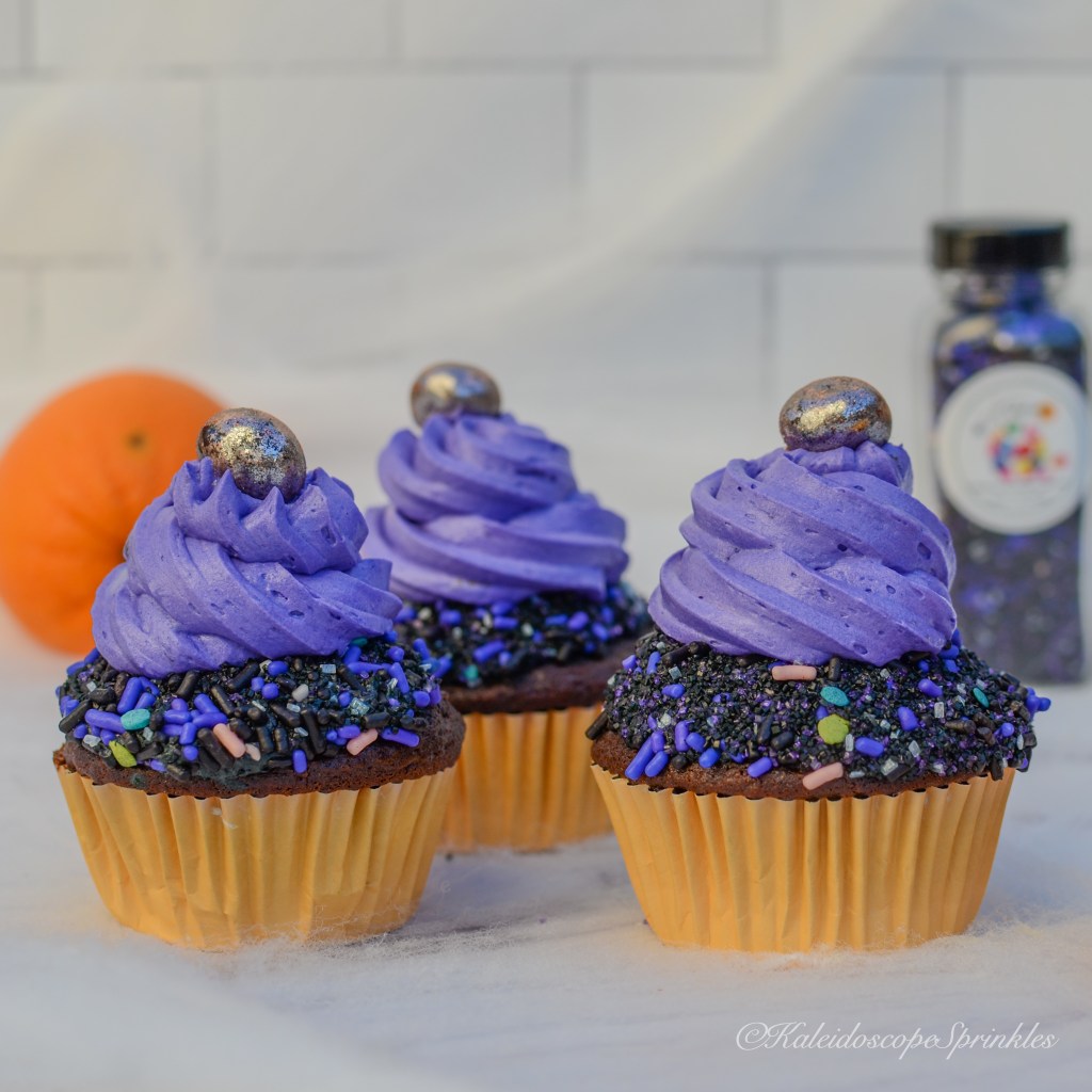 Decorate cupcakes using Kaleidoscope Sprinkles Scary Spice Sprinkle Mix.