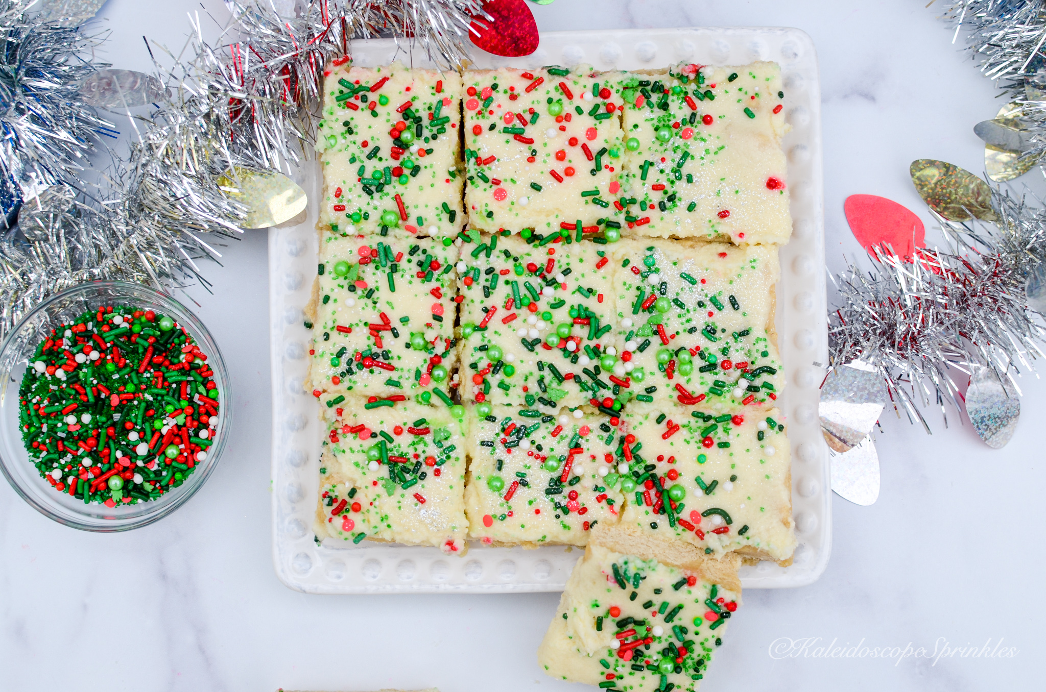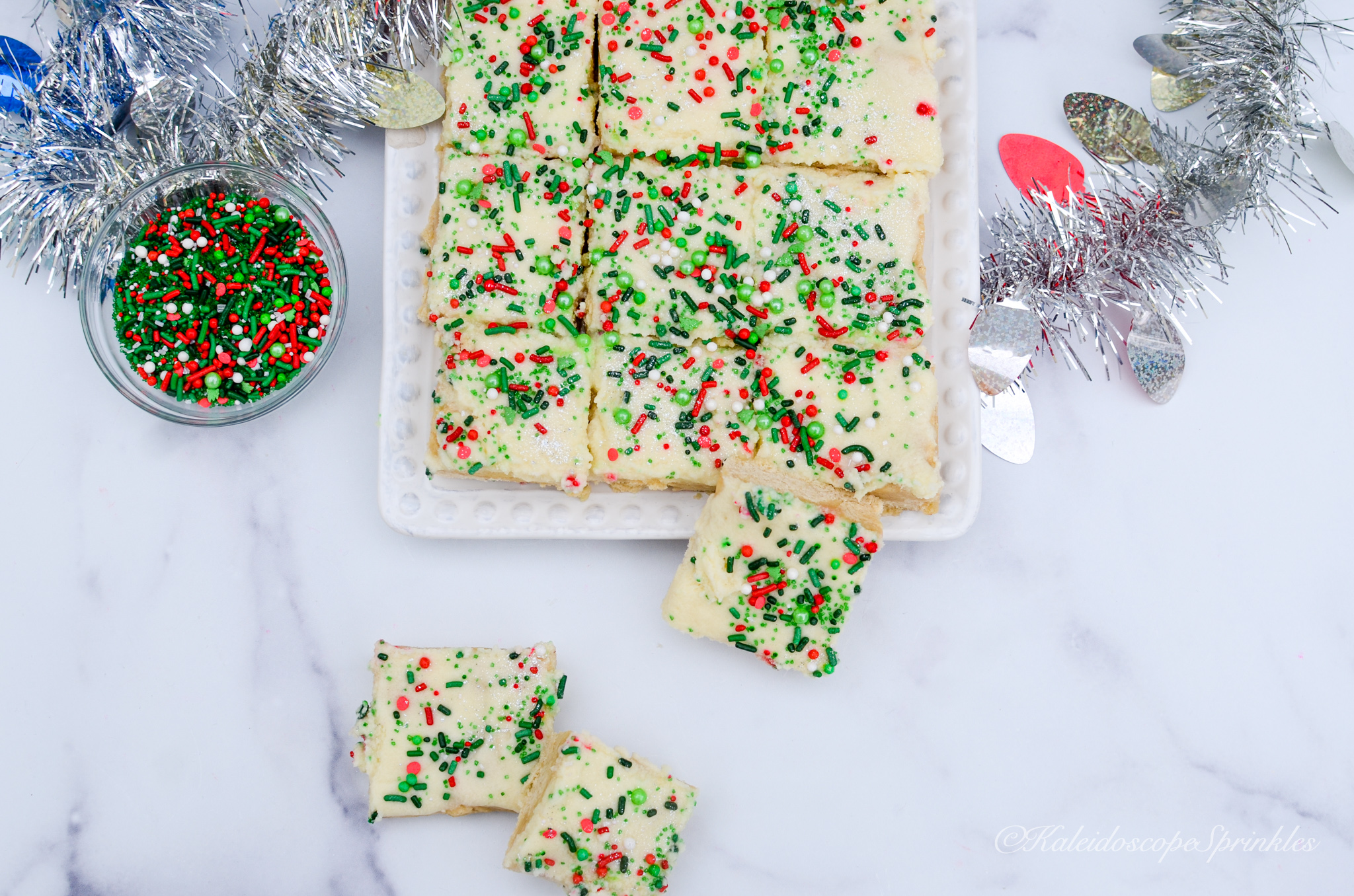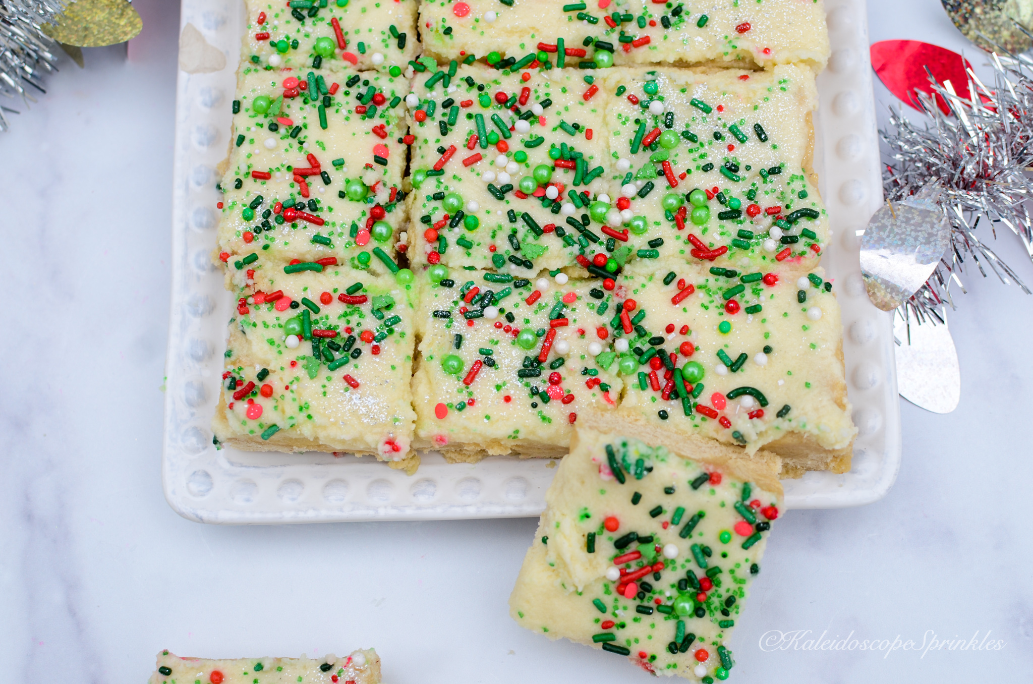 Top with sprinkles and Cosmic Shimmers. Cut into 24 bars.