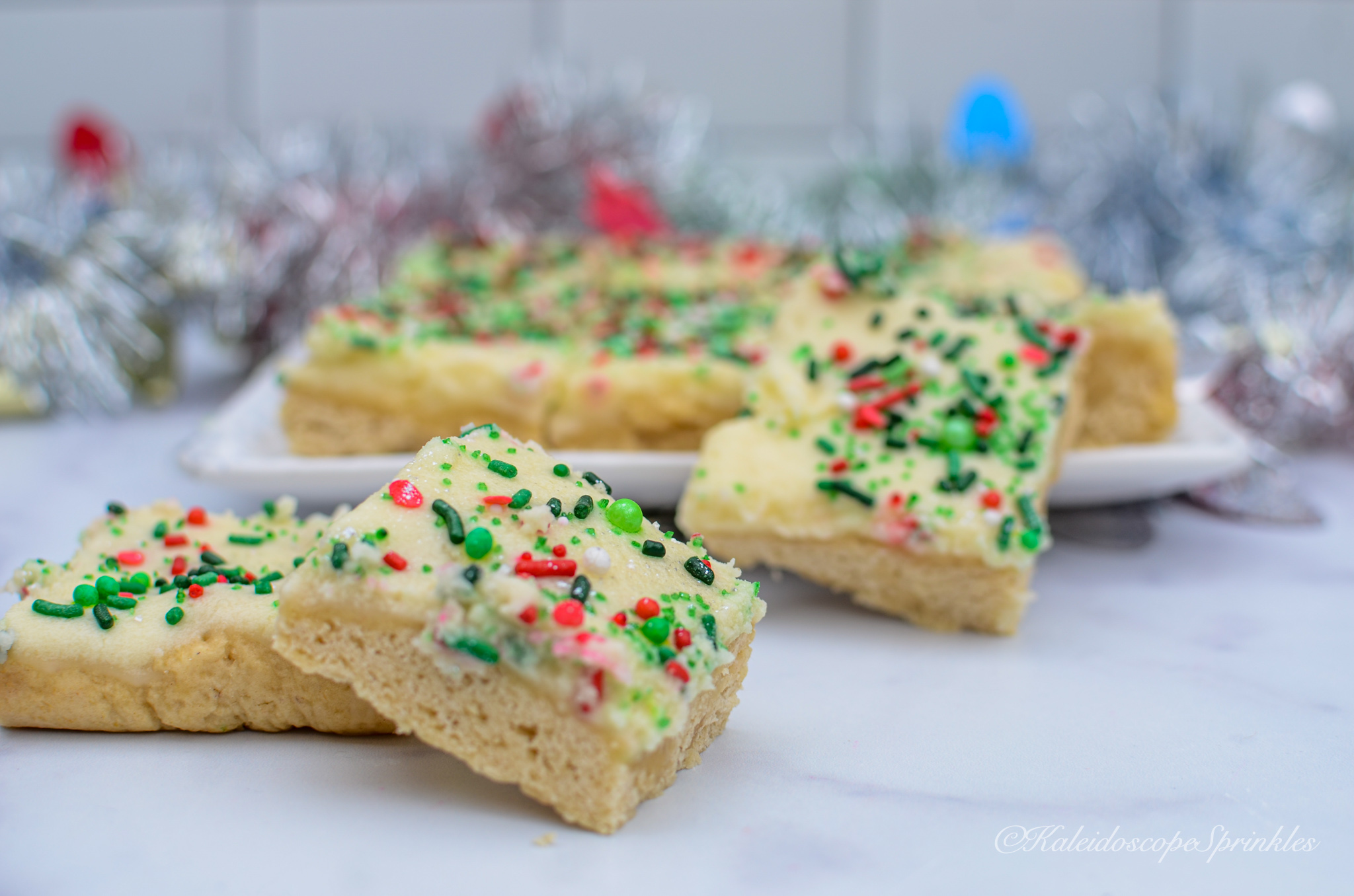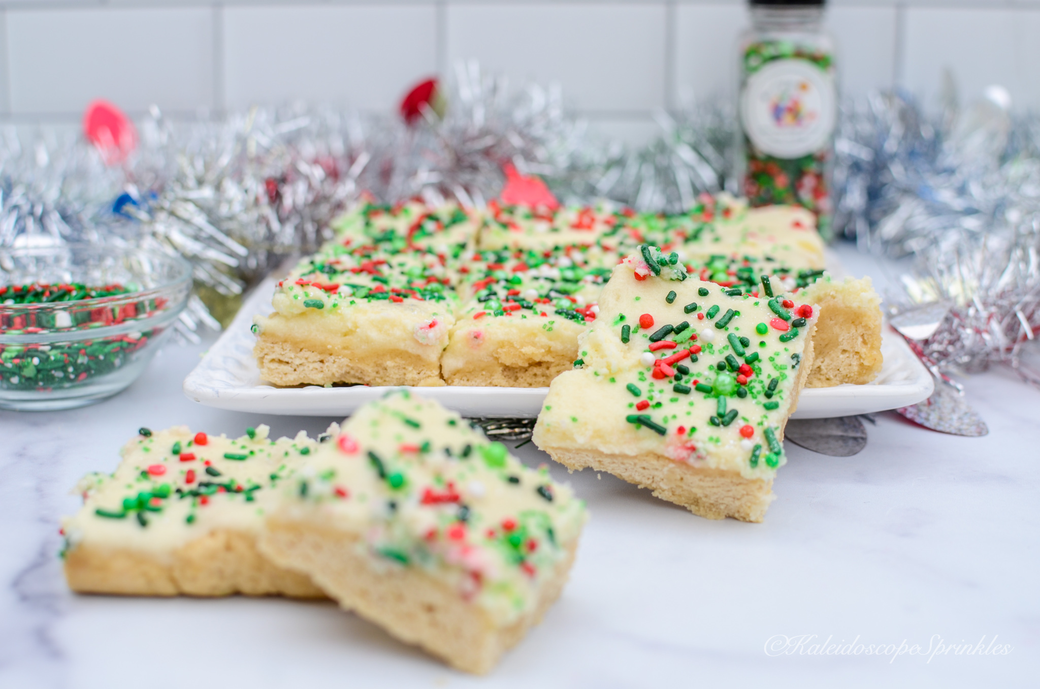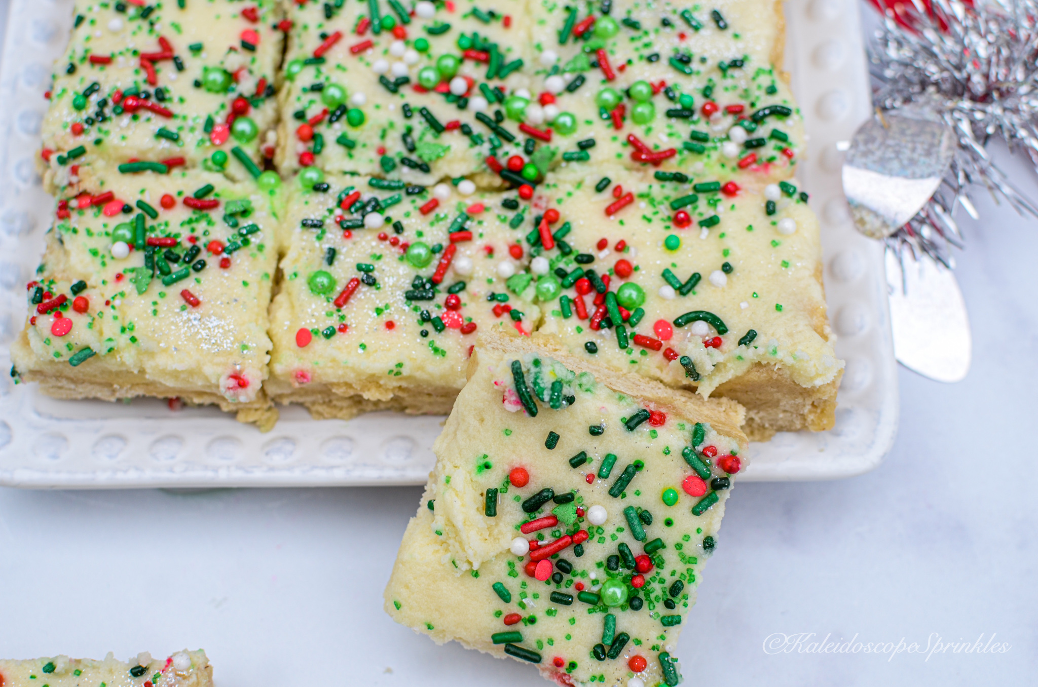 Top with sprinkles and Cosmic Shimmers. Cut into 24 bars.