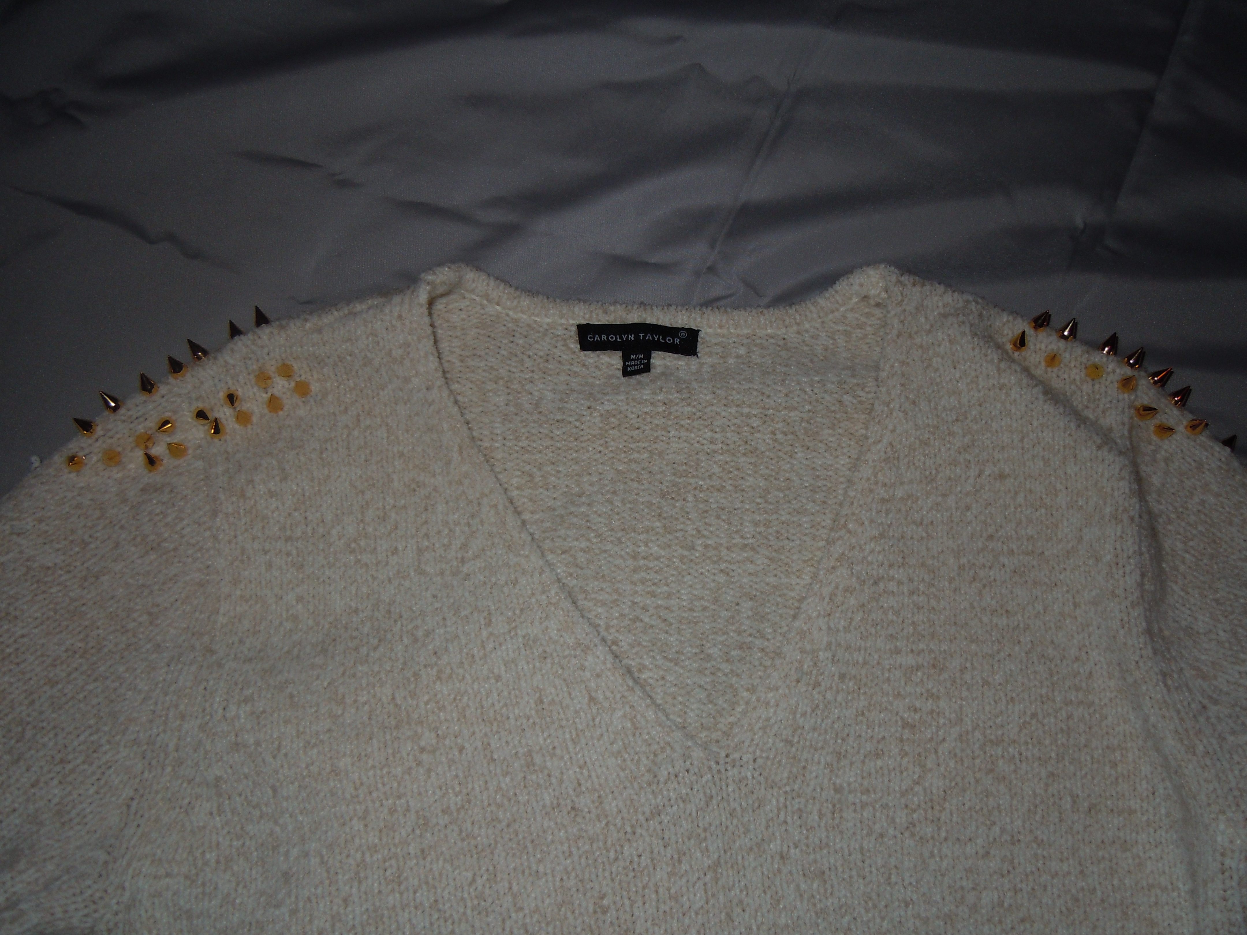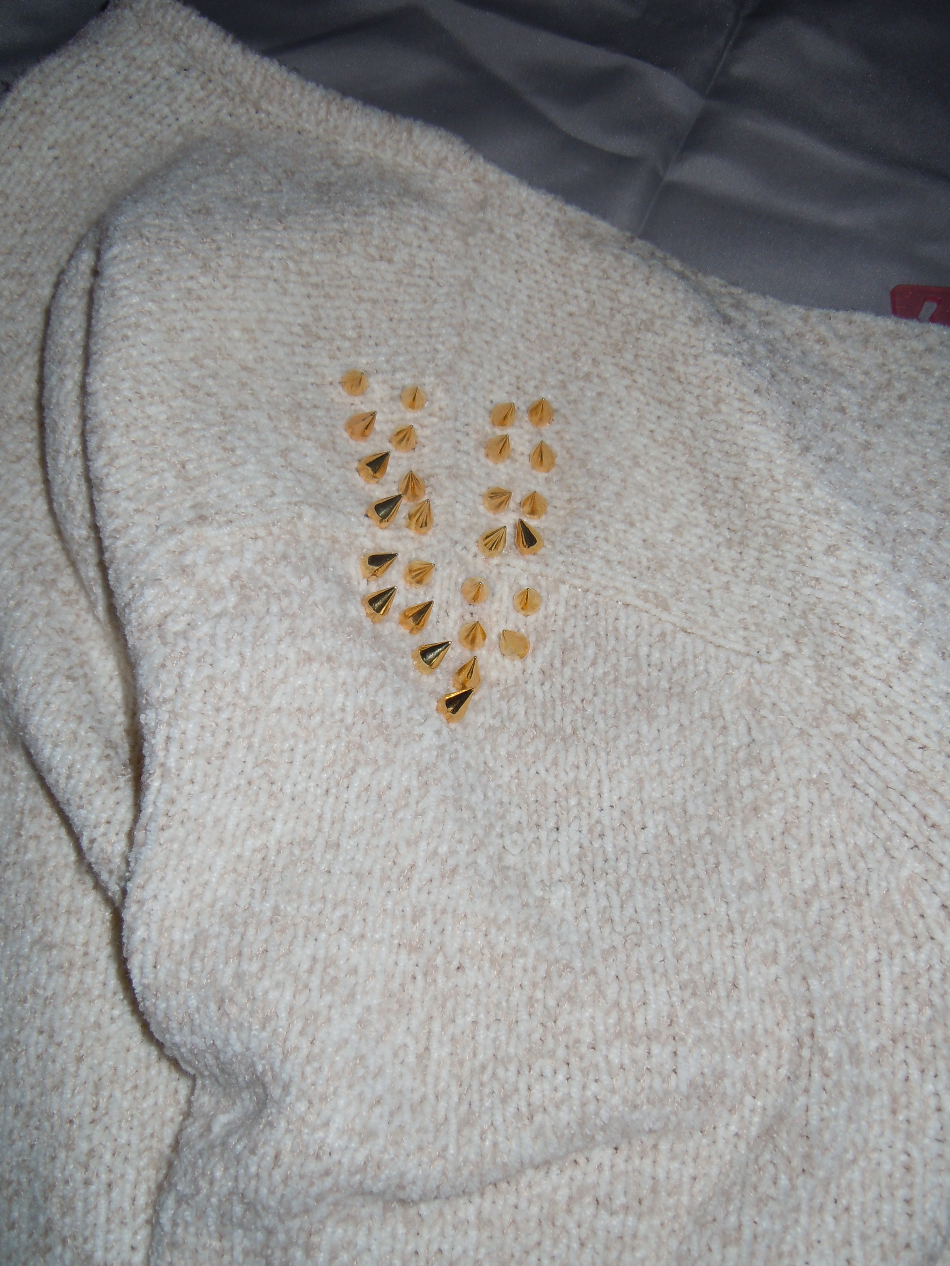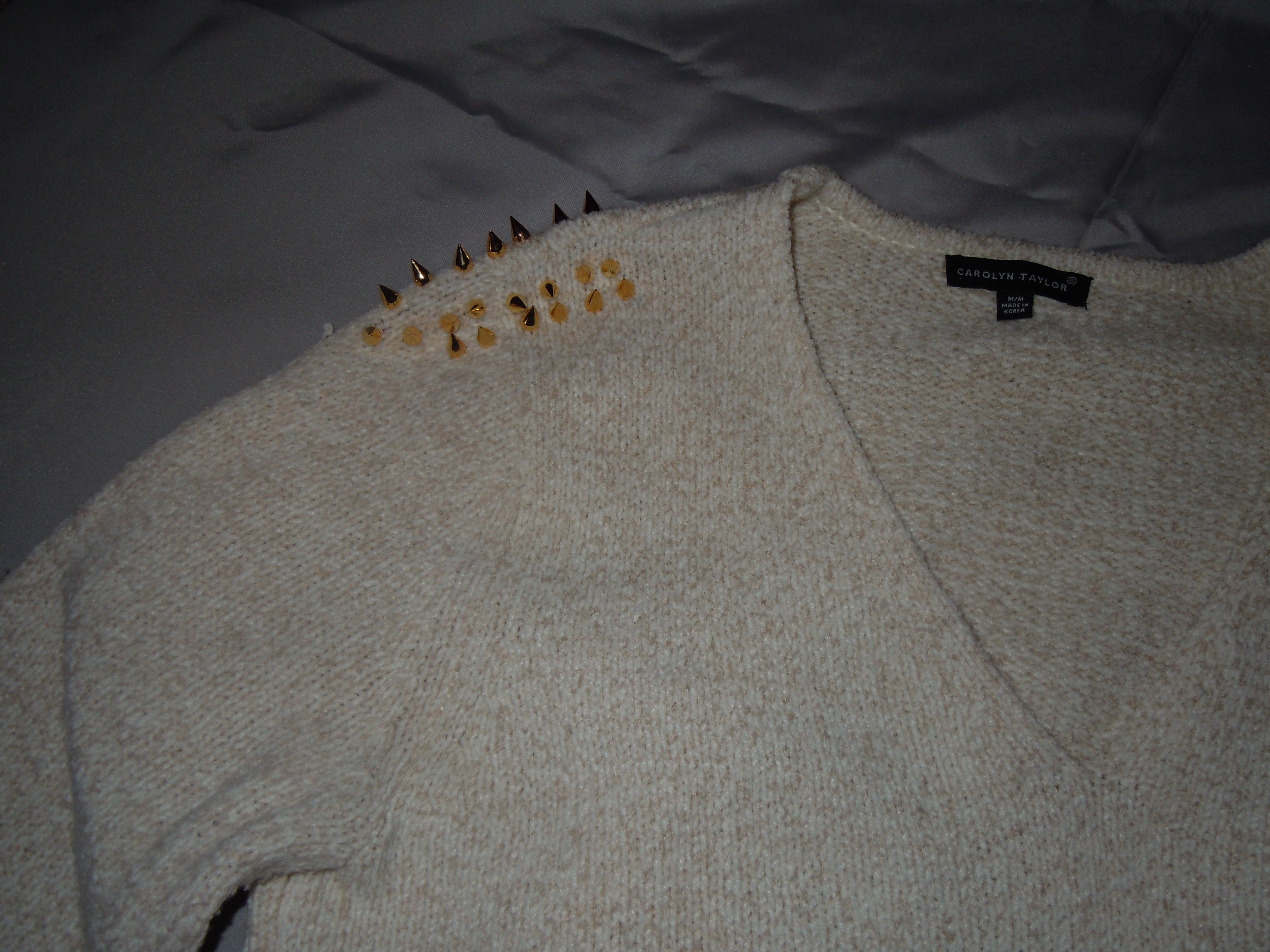 I was scrolling through Instagram the other day and I saw one of the cutest sweaters on someone’s fashion account. It was a simple sweater but what made it stand out was the shoulder embellishment. There were spikes on the shoulder, which brought a new flare to a basic top. I thought to myself “this is so easy, I can do that!” Thats exactly what I did and here is how I did it.