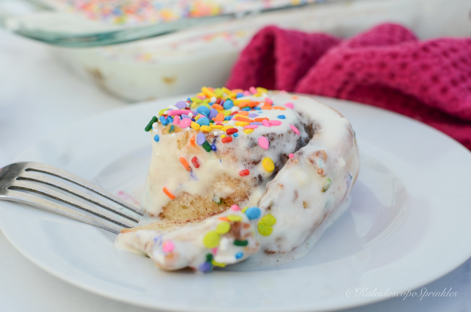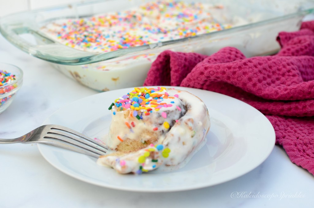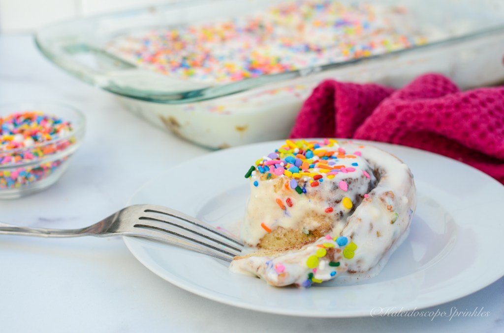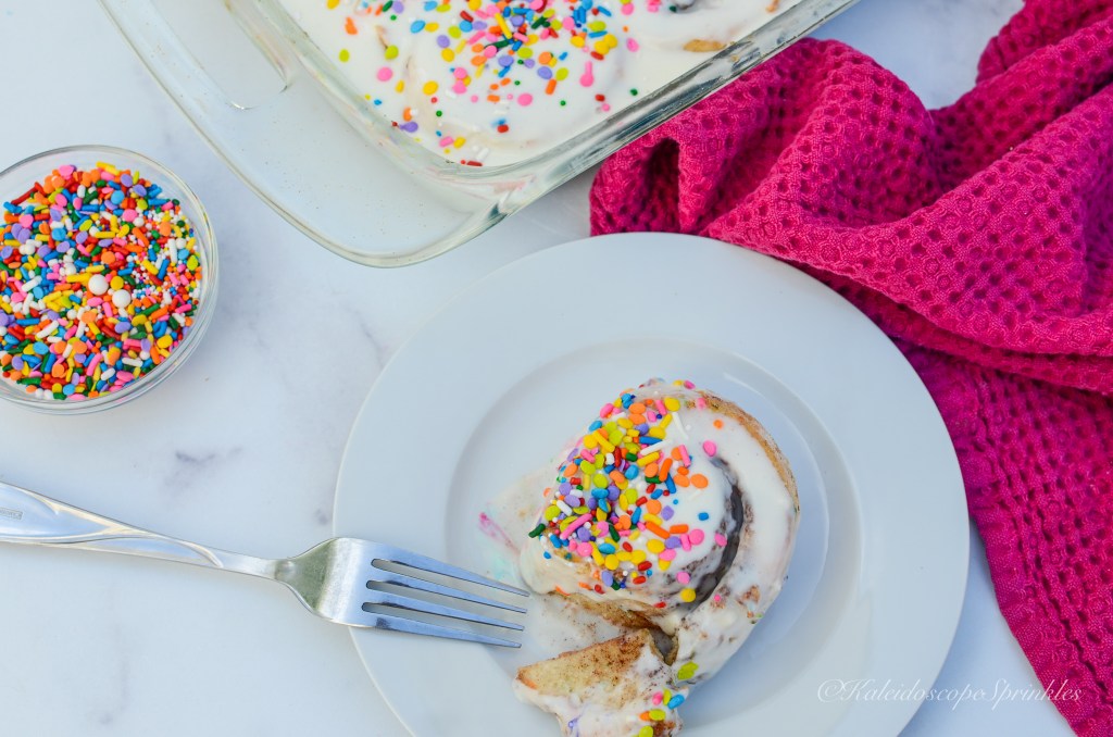 I decided this year I would use my favorite meal as inspiration for a new birthday recipe. I took my traditional cinnamon roll recipe and upgraded it for celebratory purposes. I wanted my birthday brunch full of color and flavor just like me. I infused Kaleidoscope Sprinkles rainbow sprinkle mix, The Wizz, into the dough, so each bite of this cinnamon concoction would feel like a party. I also used the delicious pineapple Bellinis from my Palm Dessert meal to elevate the glaze for my Rainbow Rolls.