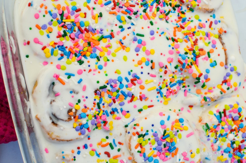 Spread glaze over slightly cooled rolls. Cover with more sprinkles (optional).