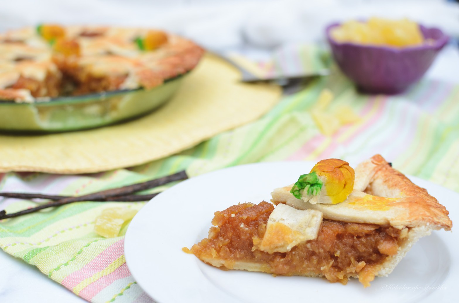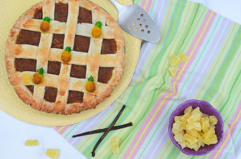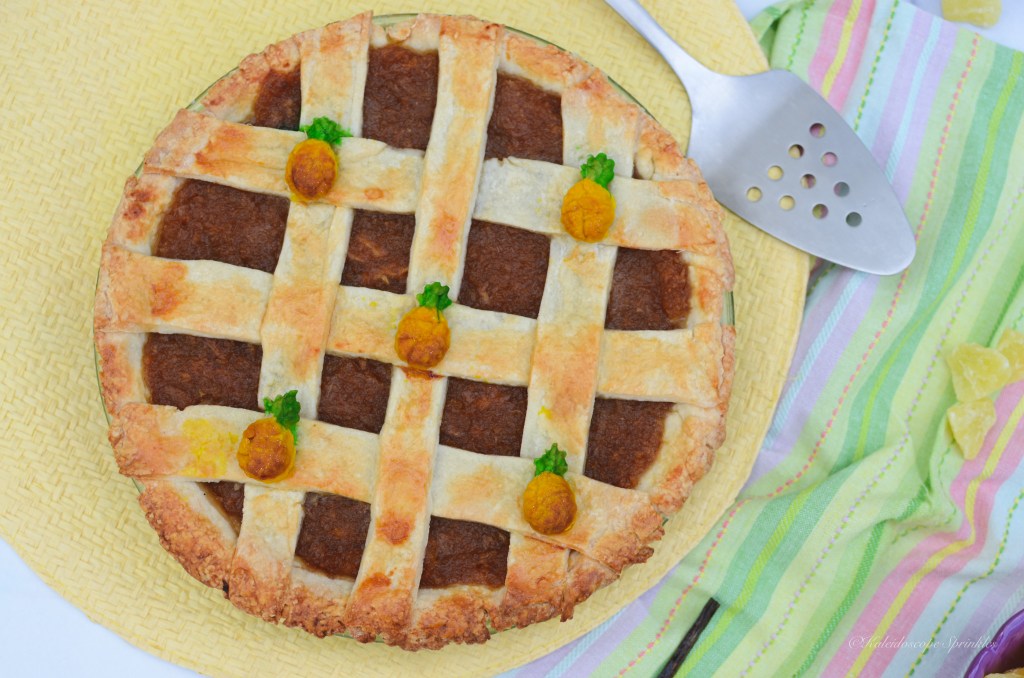 After being back in the States, I tried to savor every pineapple tart I had and make them last as long as I could. My pineapple tart souvenirs lasted probably a good month before my supply ran empty. Thankfully my tastebuds remembered every bite, so I could recreate this delicious dish for myself and share with you. Instead of making tarts I decided to create a pie form. This pineapple pie was easier to make than tarts, but still had all the flavors I remembered in Singapore. I also thought that a pineapple pie would add a little western flare to the southeast Asian treat.