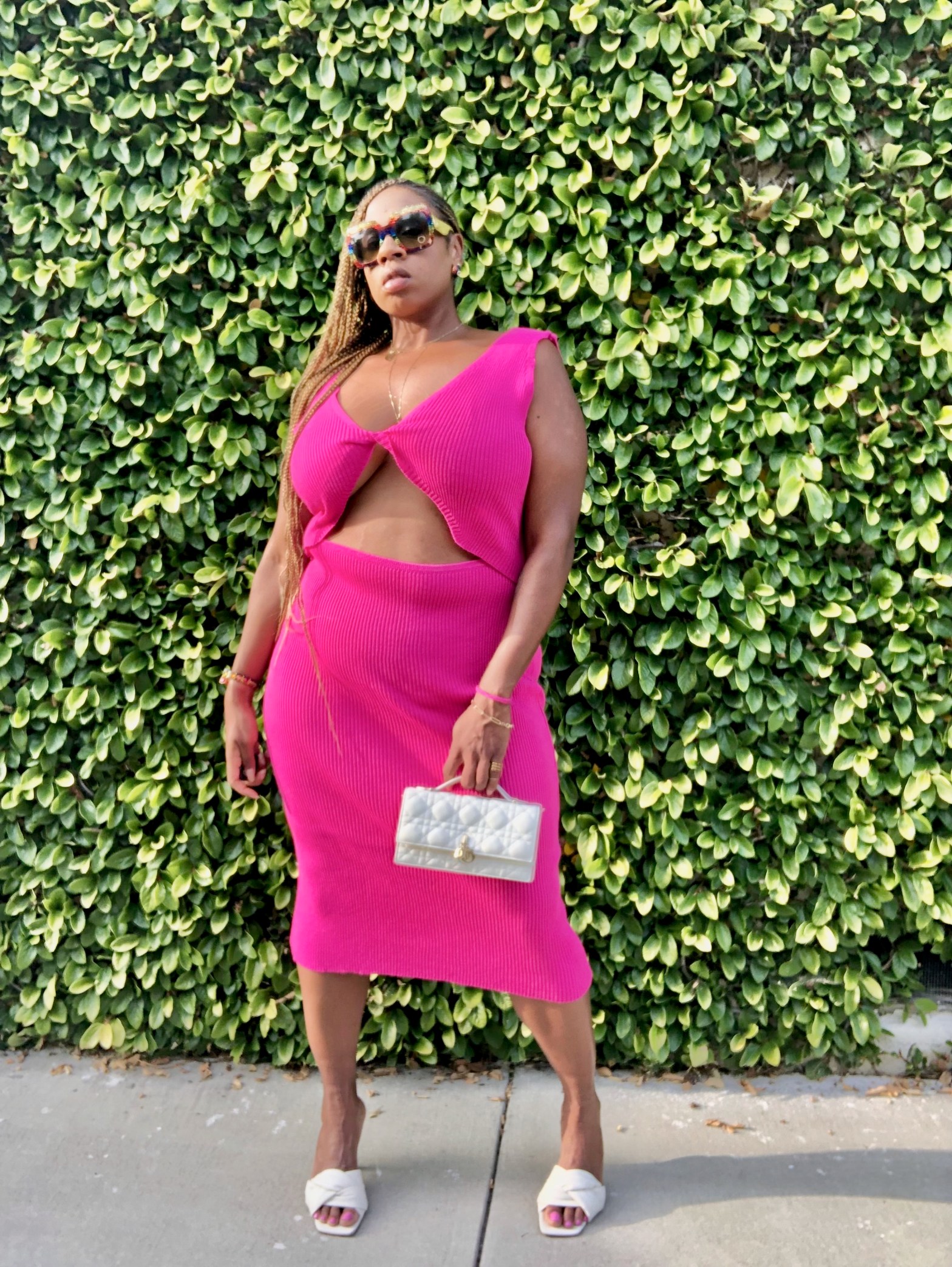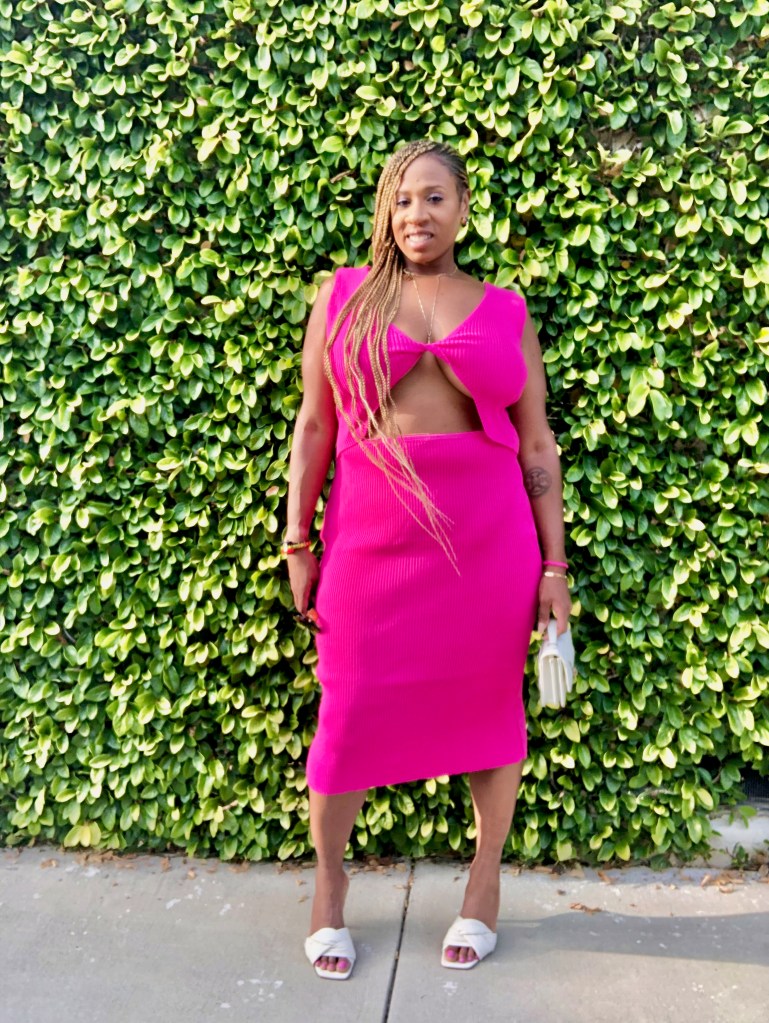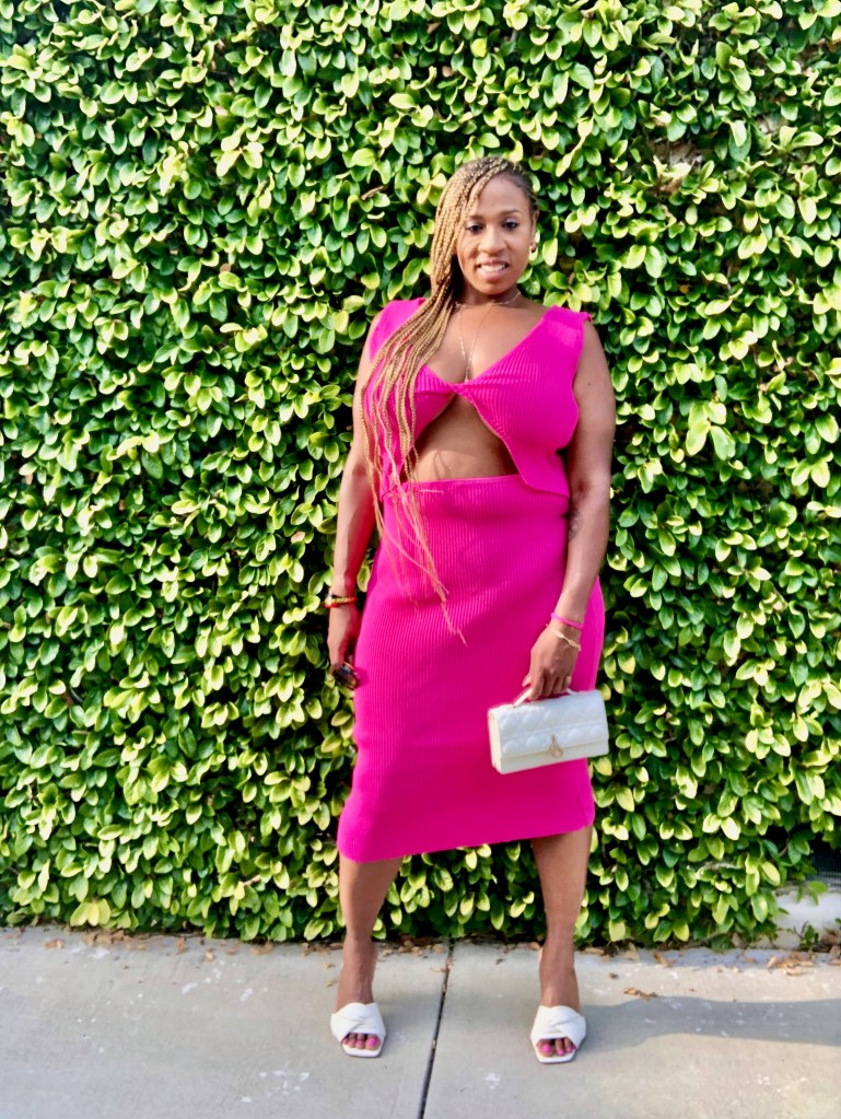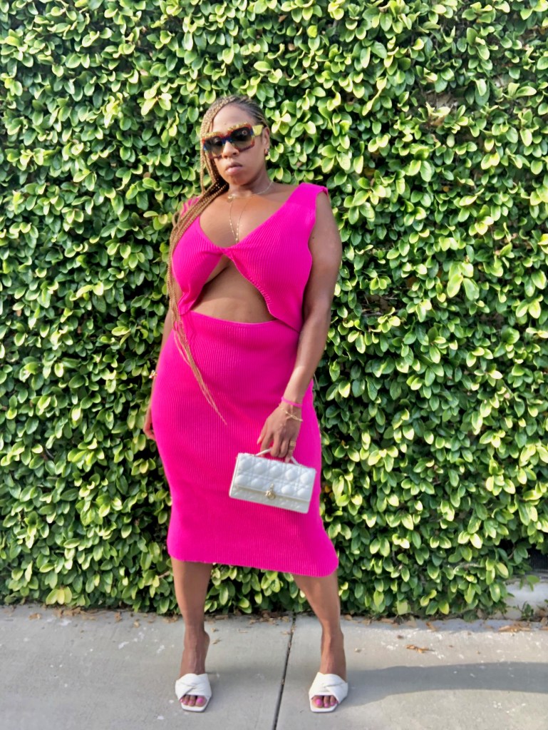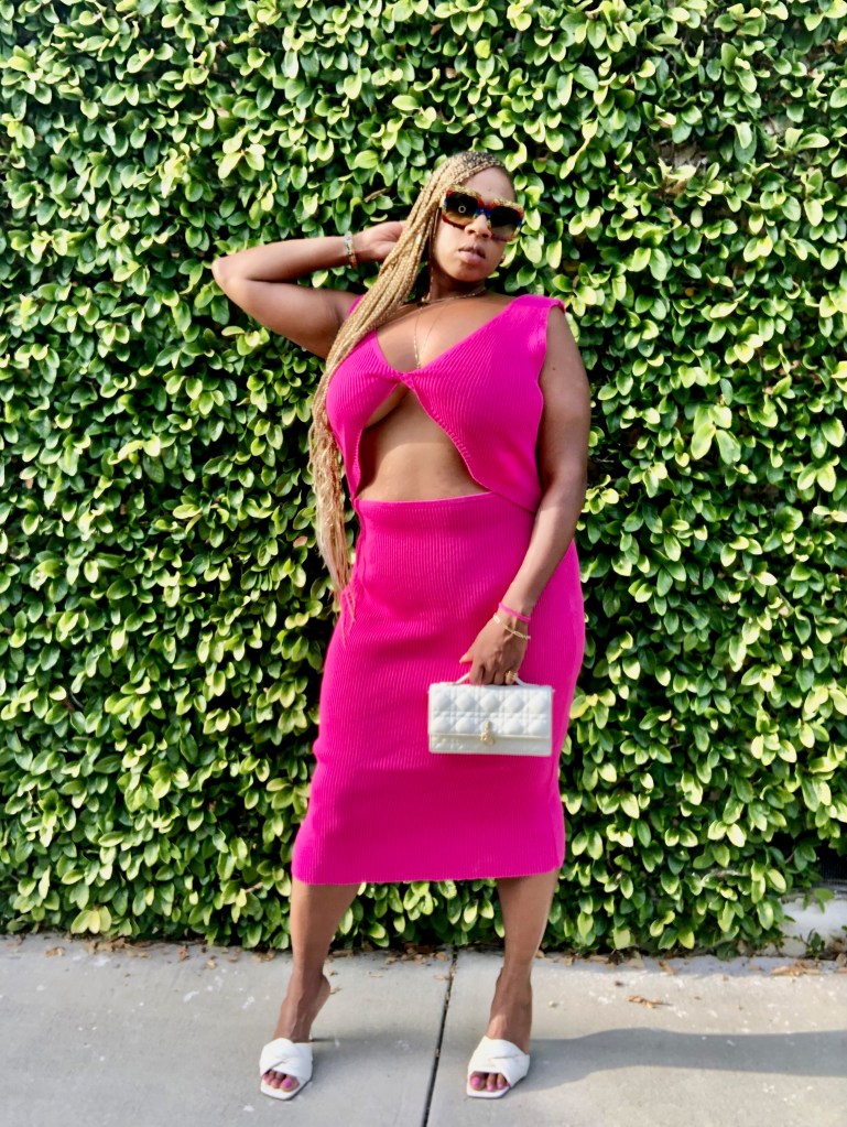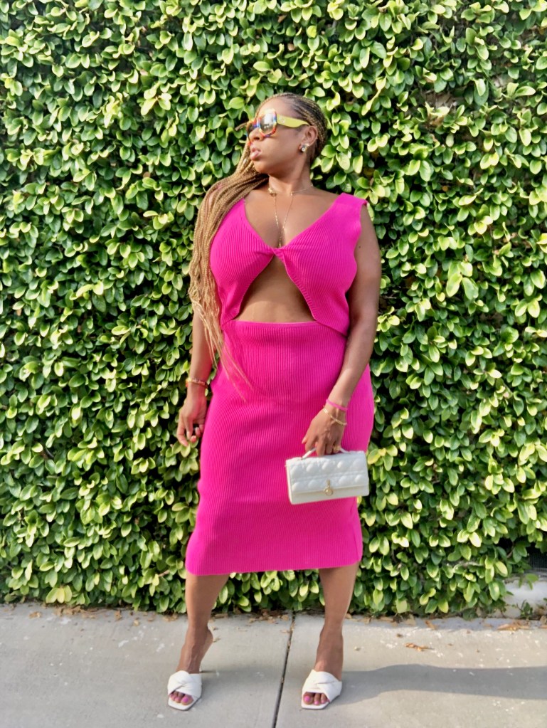 I decided to wear a dress in the color of the year, Magenta, for said occasion. The overcast June days helped me pick out this stylish cut out sweater dress to put on. I am entering a new decade even more happy and healthy. I made a lifestyle change to be in the best mental and physical shape of my life. This curvaceous dress is definitely showing off all the work I have been putting in and I’m living for it.