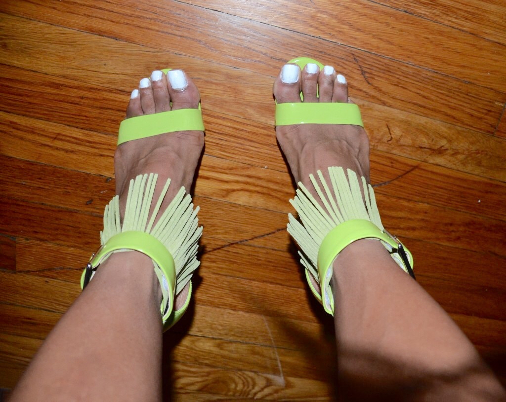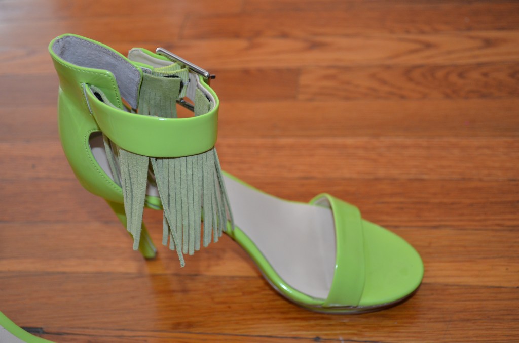 Fringe is definitely in! As it comes to fashion this season, you can find fringe on pretty much anything. This simple feature seems to add an extra layer of pizazz to shoes, clothing, handbags, etc. I especially like that extra element on the different shoes of the season. It makes the shoes seem extra special, but unfortunately also extra expensive. I, of course, thought to myself that this is something that I could tackle as a project. I gave it try and they turned out great. It was super easy to do and took me about 10 minutes total. Lots of compliments. Here’s what I did: