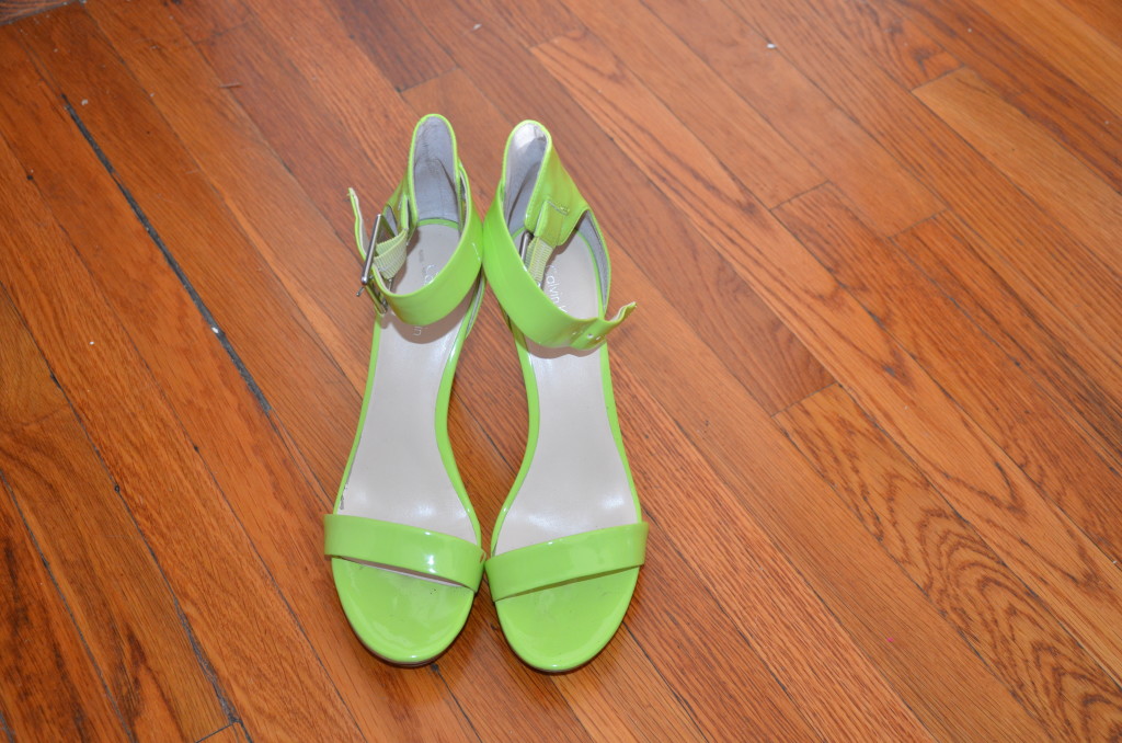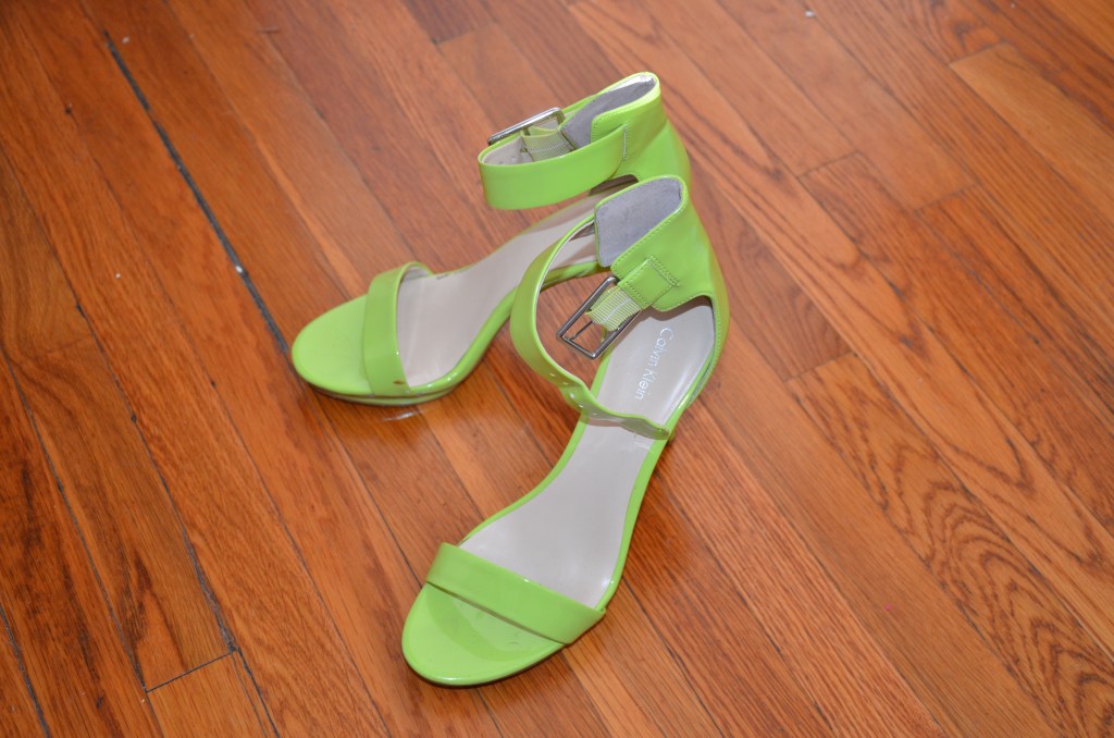 One pair of ankle strapped heels with at least one inch band. (Mine are from Calvin Klein).