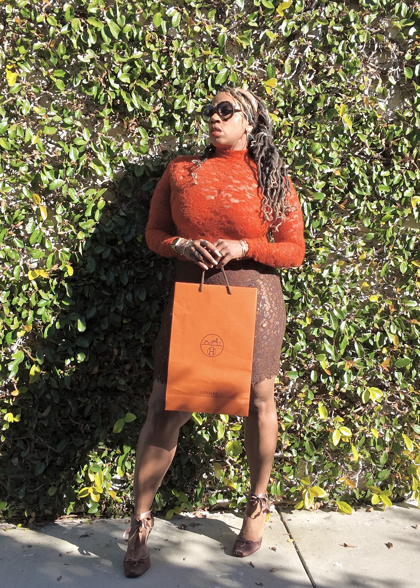 The entire YSL seasonal line is absolutely incredible, but one particular outfit caught my eye that I could not forget. This intricate structured lace bodysuit with color blocking chocolate pencil lace skirt. The $20,000 price tag for this outfit was way out of my price range, so I made the decision to recreate the fit for a more reasonable price and my personal style.